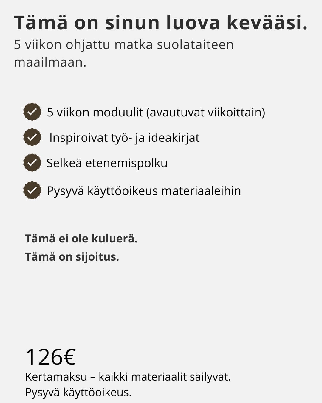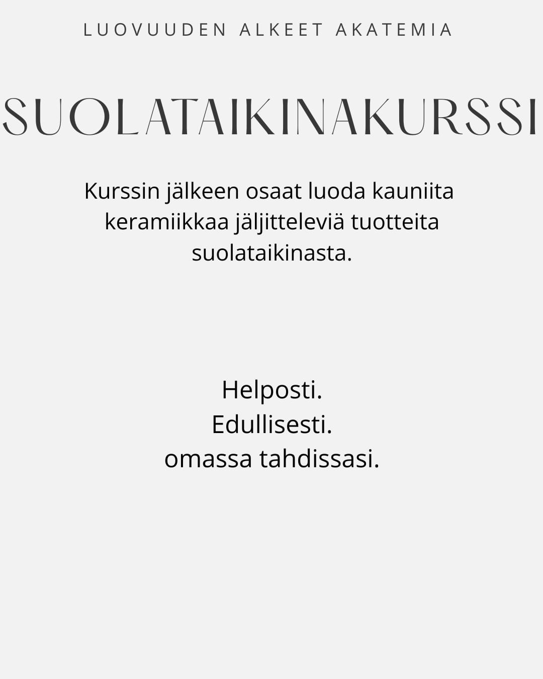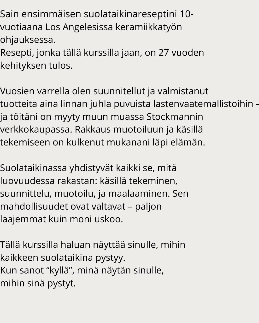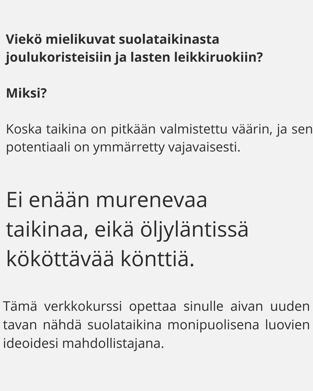 voit tutustua 5 viikon suolataikina verkkokurssiini.