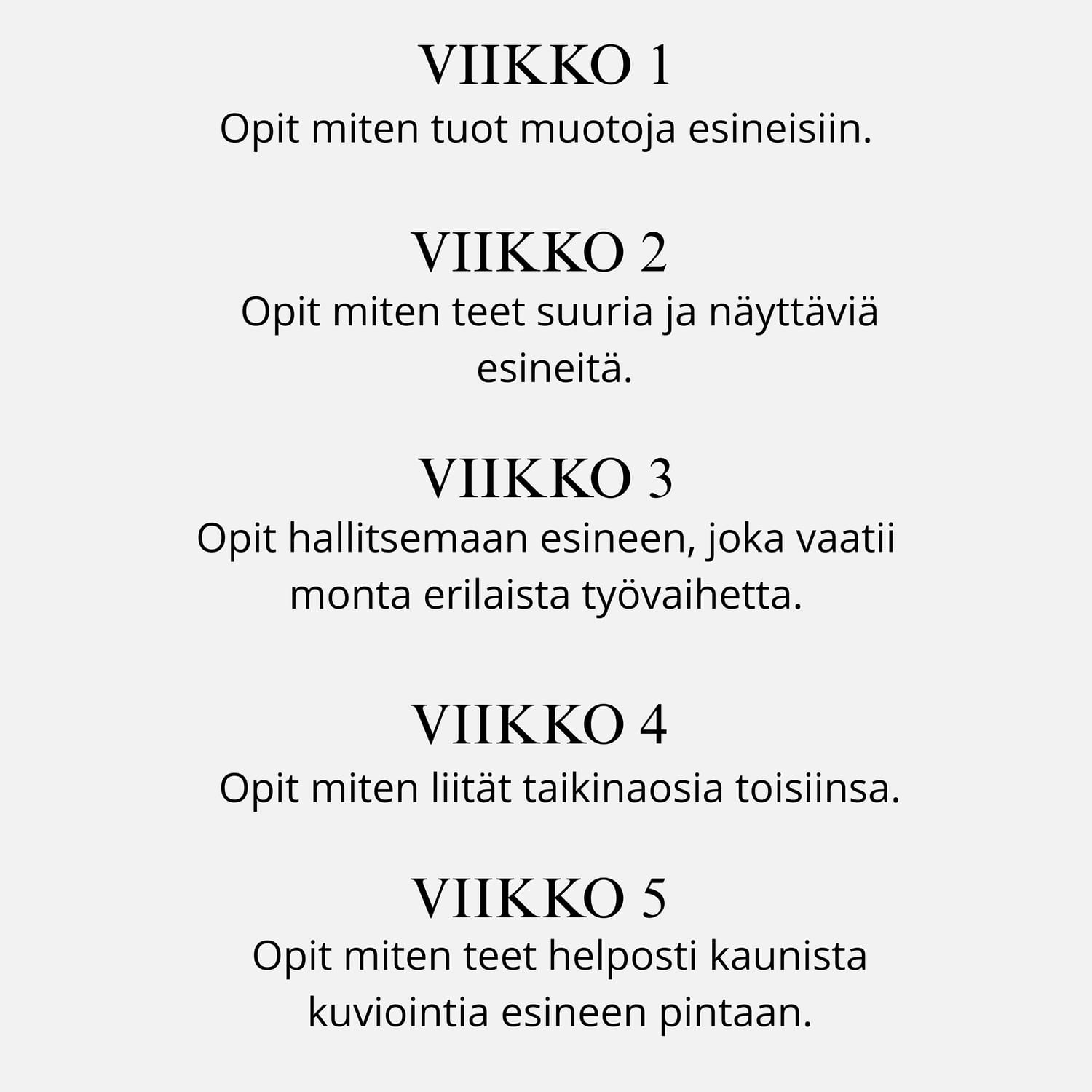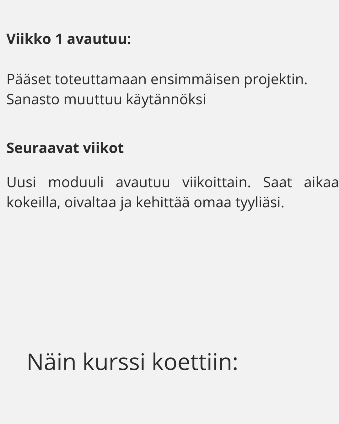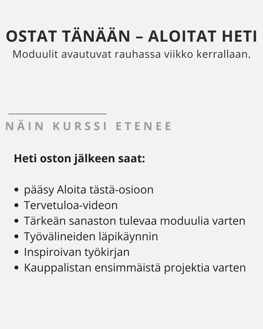 Kurssilla opetan kaikki vaiheet.